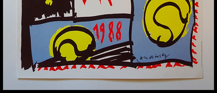Pierre ALECHINSKY : affiche officielle Roland GARROS, affiche ancienne originale tennis signée 1988
